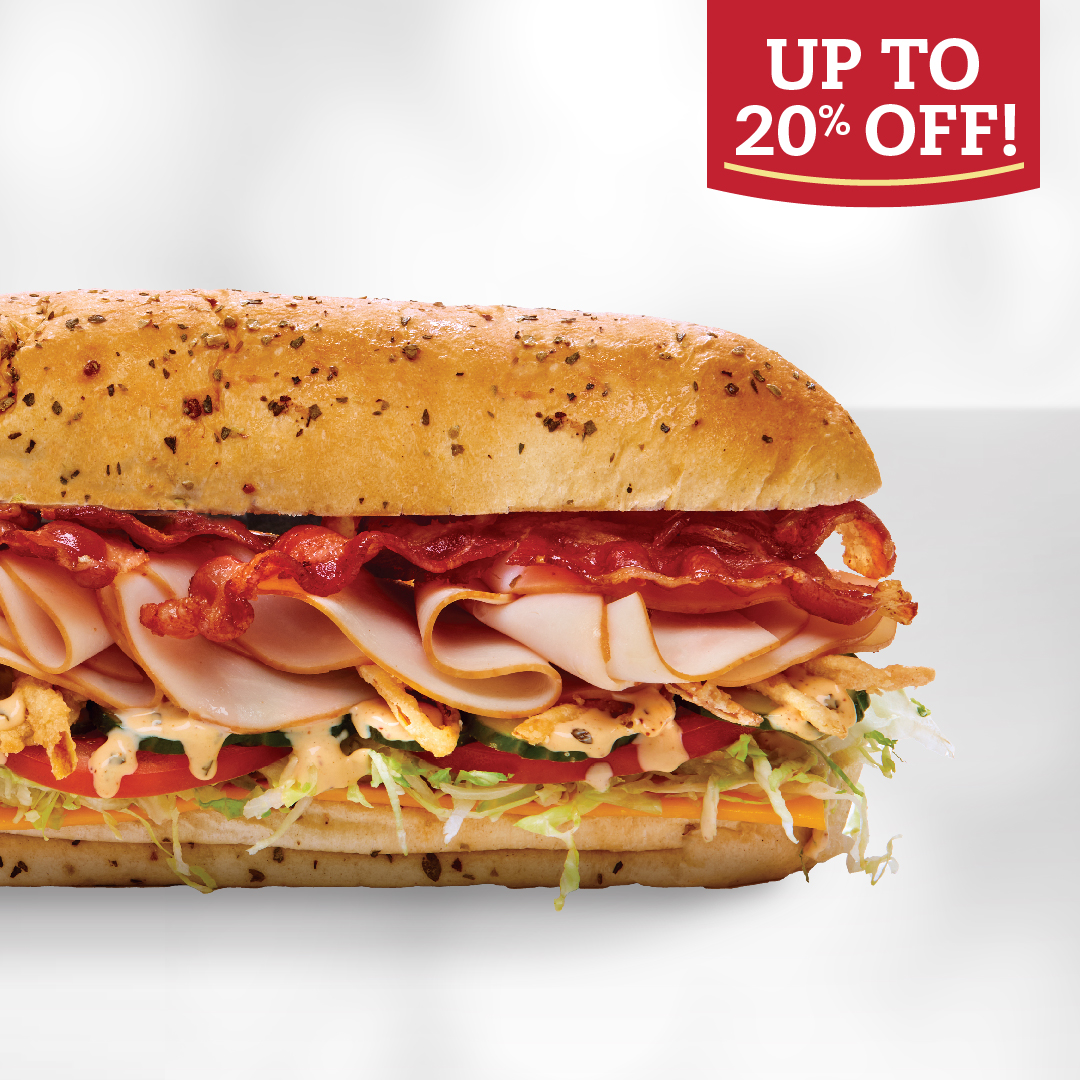 Participating subs: Major Bacon, Peppery Chicken Caesar, Chipotle Turkey & Bacon, Canadian Club, Ultimate Club