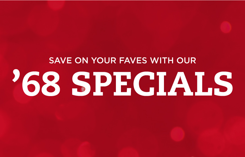 Valid only on the participating subs listed above. Must present coupon before ordering. Can be redeemed in-store or online via mrsub.ca or the MR.SUB Official App using promo code. Item selection may vary based on availability and location. Additional fees may apply based on selecting subs outside of the specified category, toppings, extras, or delivery. Delivery is available at select locations, where serviceable. Tax is extra. No cash value. Offers cannot not be combined with any other offer or promotion. One coupon per quest per visit. '68 Specials is subject to end without notice.