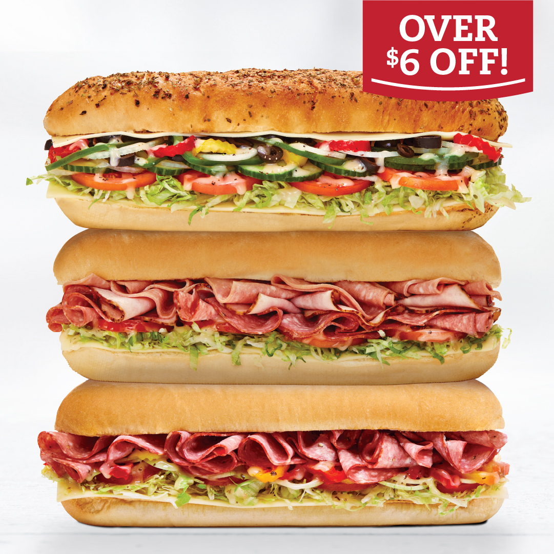 Participating subs: Assorted, Ham, Veg & Cheese, Pizza, Meatball, Italian Salami