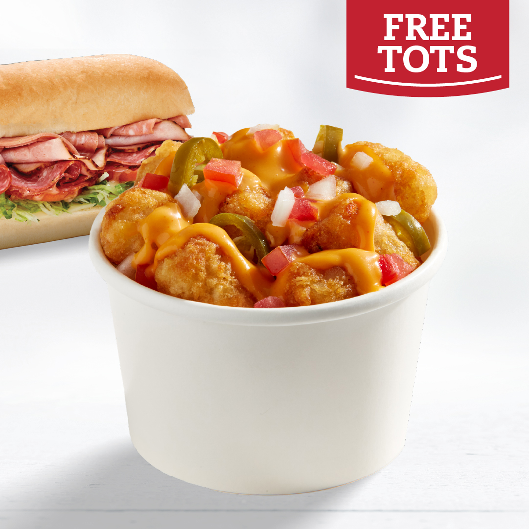Free Fired Up Tots with the purchase of any Large sub