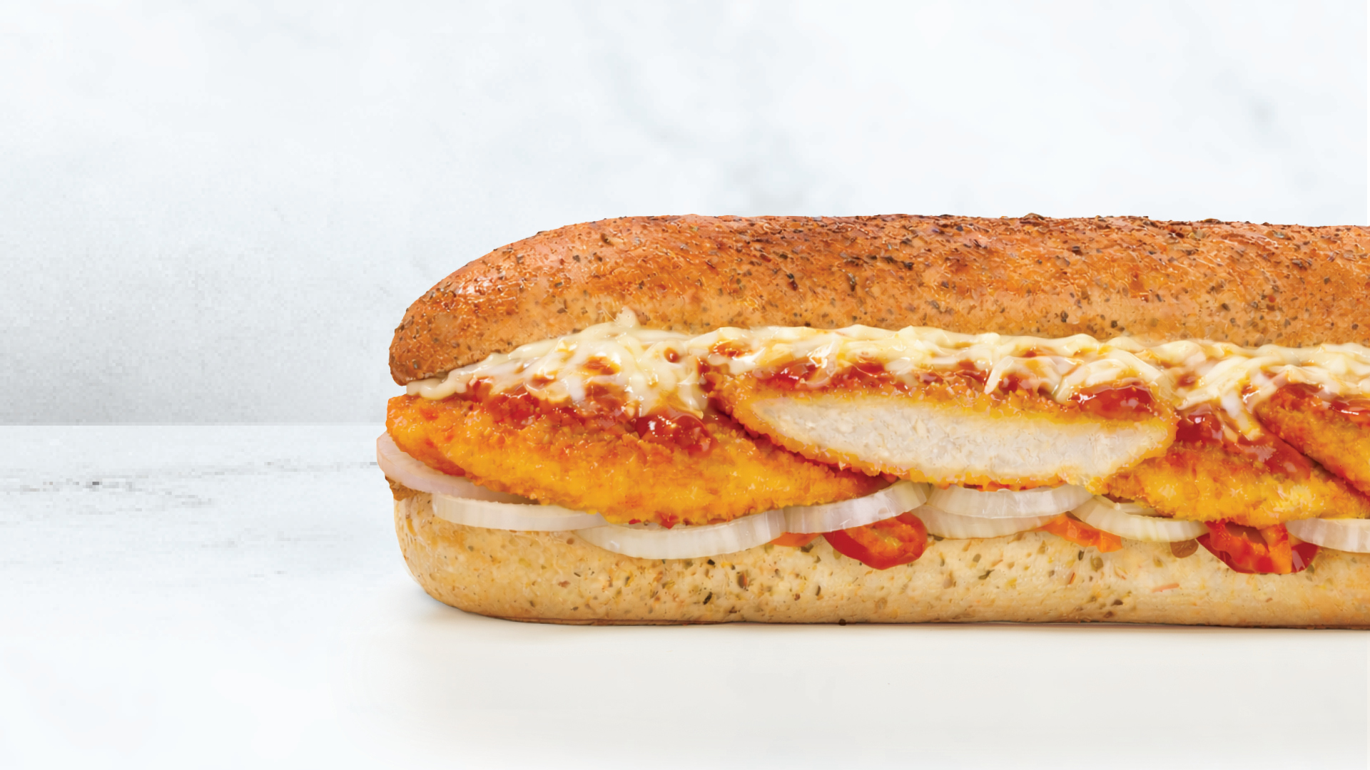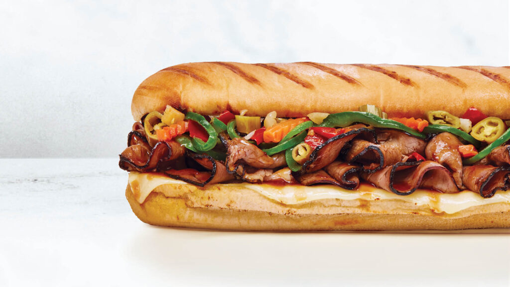 Tender roast beef dunked into Jus and Fired-Up to perfection. Topped with spicy giardiniera that brings the crunch and caramelized sautéed peppers for sweetness. Take this sub to the next level by adding a side of Jus for $1.99.